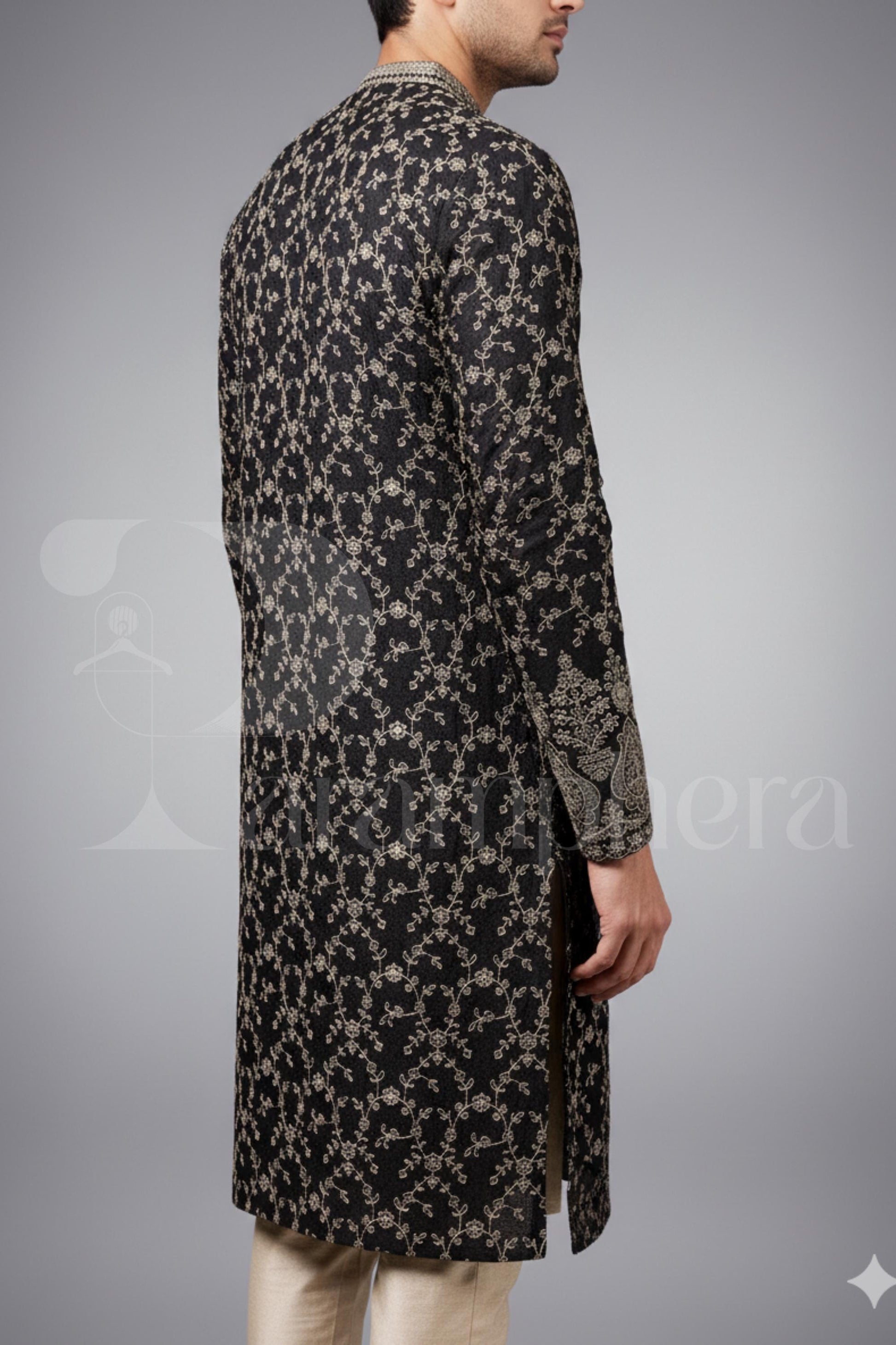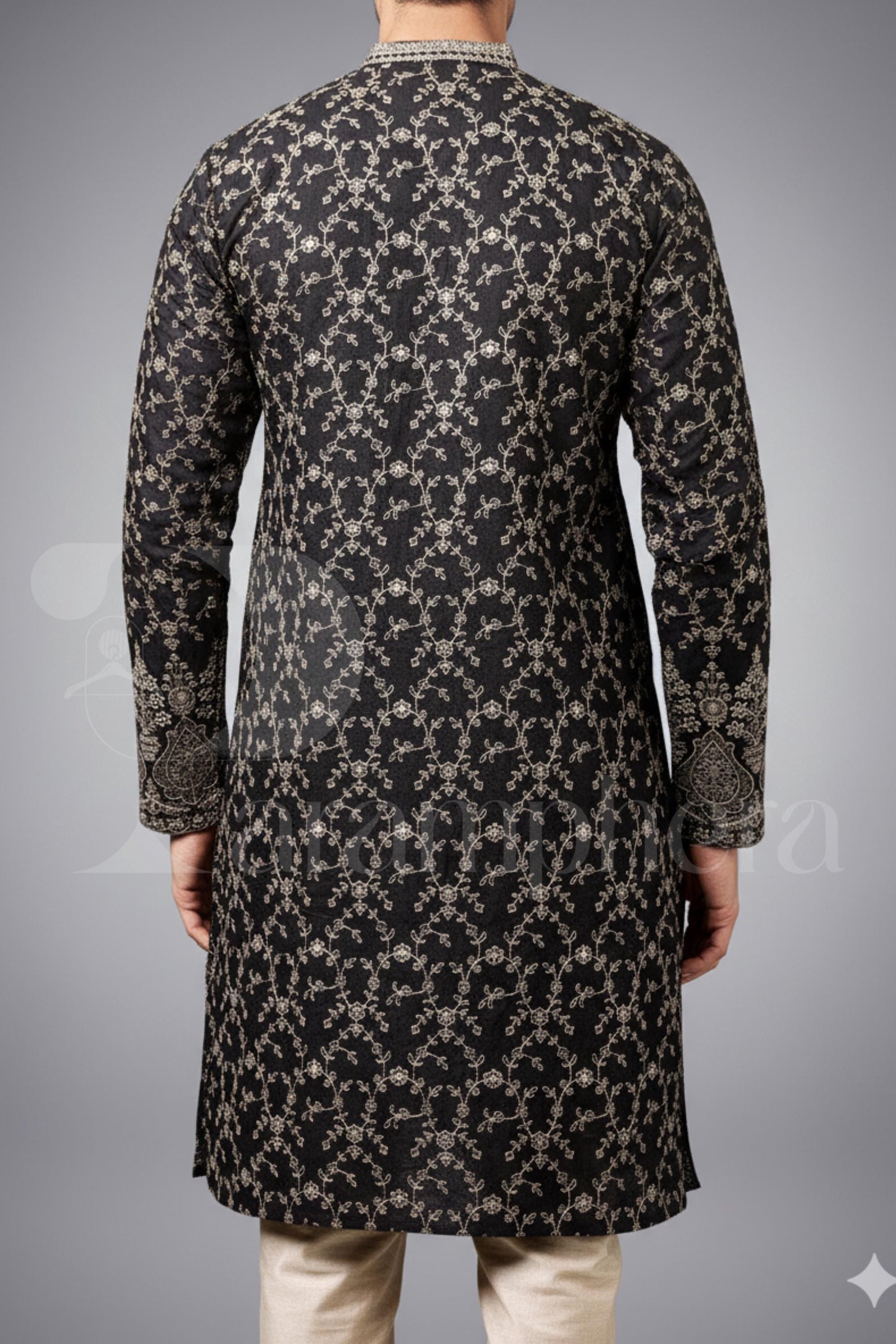 Black Embroidered Kurta Pajama Set: Indian Wedding Outfit