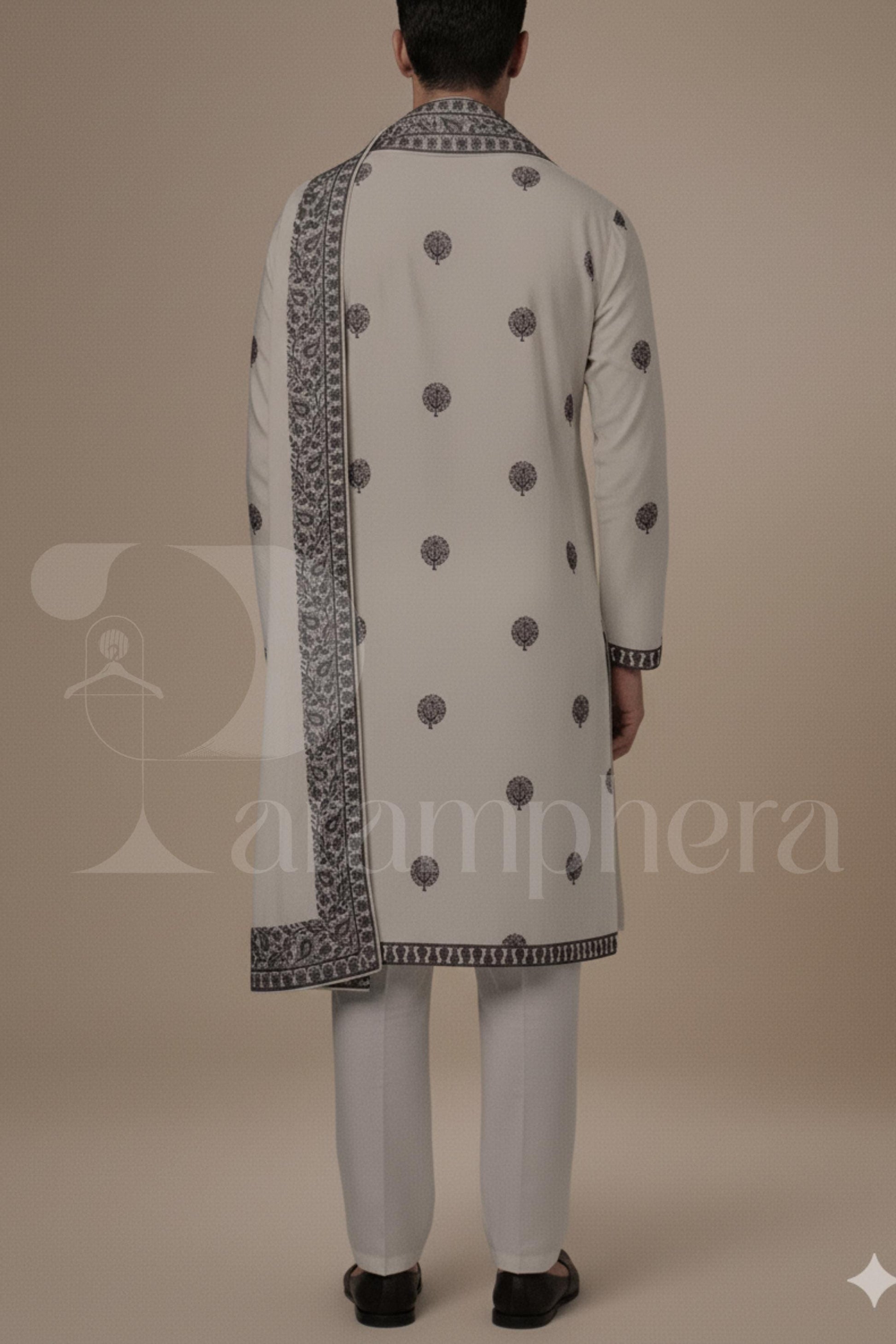 This embroidered ivory kurta set is a unique fusion of tradition and modern elegance — a perfect choice for grooms, wedding guests, or anyone looking to stand out at a cultural celebration.