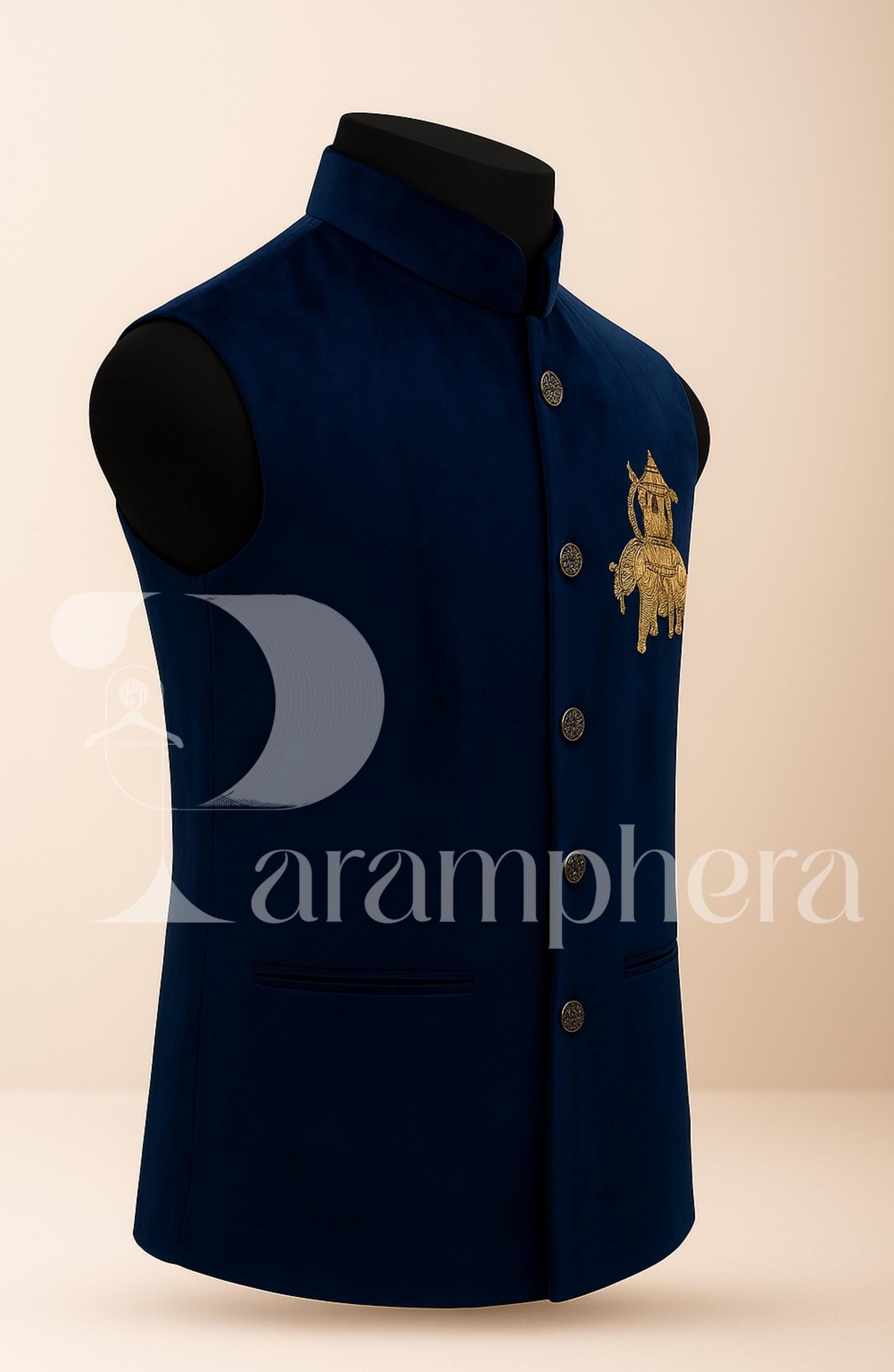 ✨ Make a regal entrance — this Royal Blue Velvet Nehru Jacket with Elephant Zardozi Embroidery is a handcrafted statement piece for global weddings, festive soirées, cultural gatherings, or groom ensembles.